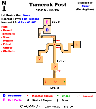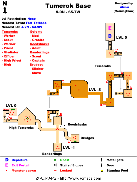 "Harsh, barren, and riddled with jagged mountains and sinister swamps, this broad expanse lacks safe havens for the weak and weary. Newcomers are advised to steer clear of these parts. Even Fort Tethana, the rumored human bastion in the northern reaches, lies amid fierce Tumeroks. It is far safer for unseasoned adventurers to stay in Osteth. On that side of the Island, near the edge of human settlements, they can hone their skills by hunting lesser creatures with others of like experience."[1]