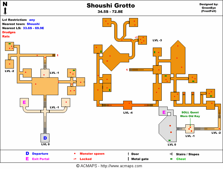 - From Shoushi, enter the Shoushi Grotto at 34.5S, 72.8E.